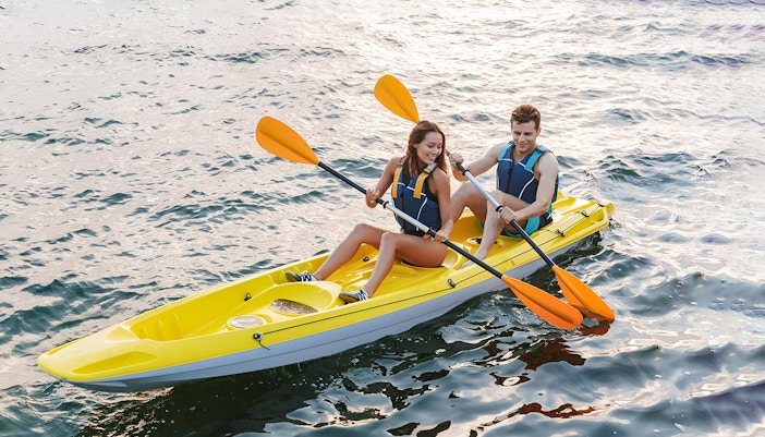 Paddeln Sie auf ruhigen Gewässern vorbei an geschützten Buchten und Vögeln auf geführten Kajaktouren, bei denen Sie die Lebensräume des Meeres und die Küstenlandschaft aus nächster Nähe betrachten können.