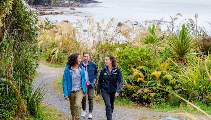 Halbtageswanderungen wie die von Port William zum Māori Beach kombinieren den Zugang zum Wasser mit Waldwegen und Gezeitenüberquerungen.